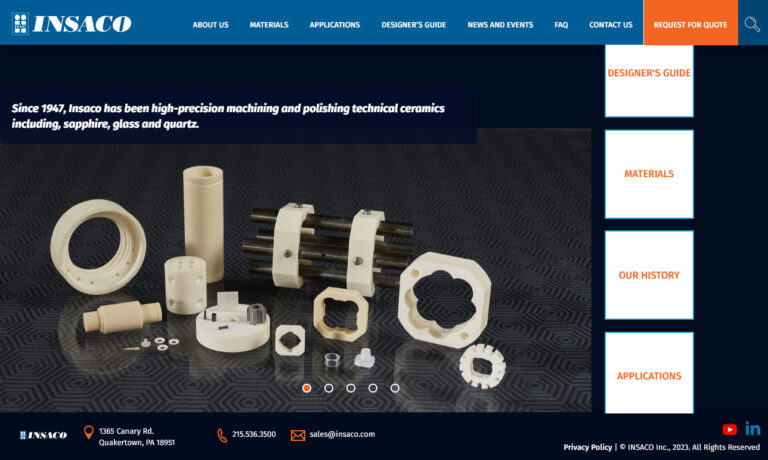 Insaco is a leading provider of precision machining services, specializing in the fabrication of high-quality ceramic, sapphire, and glass components. With over 70 years of experience in the industry, Insaco has developed a reputation for excellence in precision machining and cutting-edge technology.